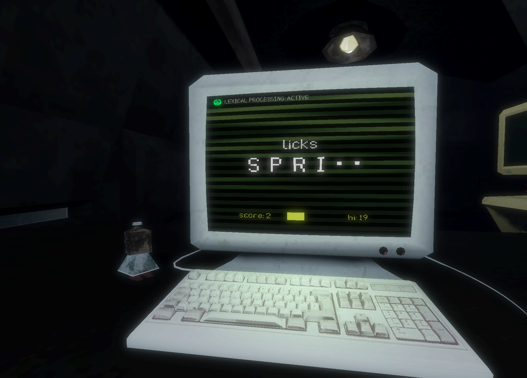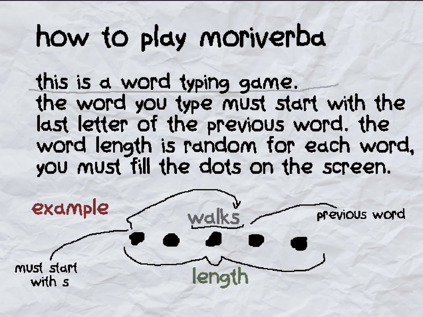 Moriverba is a prototype / demo of a typing game I've been working on for a bit. It is a fast-paced word game set in a horror environment where each word must begin with the last letter of the previous one. The longer you survive, the harder it gets. The word must exist in the English dictionary, so get to typing before the timer runs out!